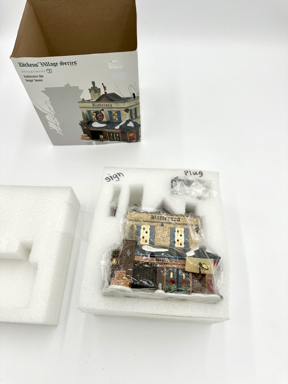 The Dept 56 Dickens Village Battersea The Dogs Home 6007596 is a charming Christmas Village piece from the Dickens Village collection by Department 56. This beautifully detailed building captures the essence of a traditional English village, complete with a quaint design and festive holiday decorations. Perfect for collectors or anyone looking to add a touch of nostalgia to their holiday decor, this piece is sure to become a cherished part of any Christmas display.This house is in immaculate condition. It has never been displayed, but it does have writing the styrofoam. The store owner I purchased it from had taken it out for photos of the website, and wrote where the signs went and where the plug went. Please look at all photos and feel free to message me if you have any questions. Thank you!
